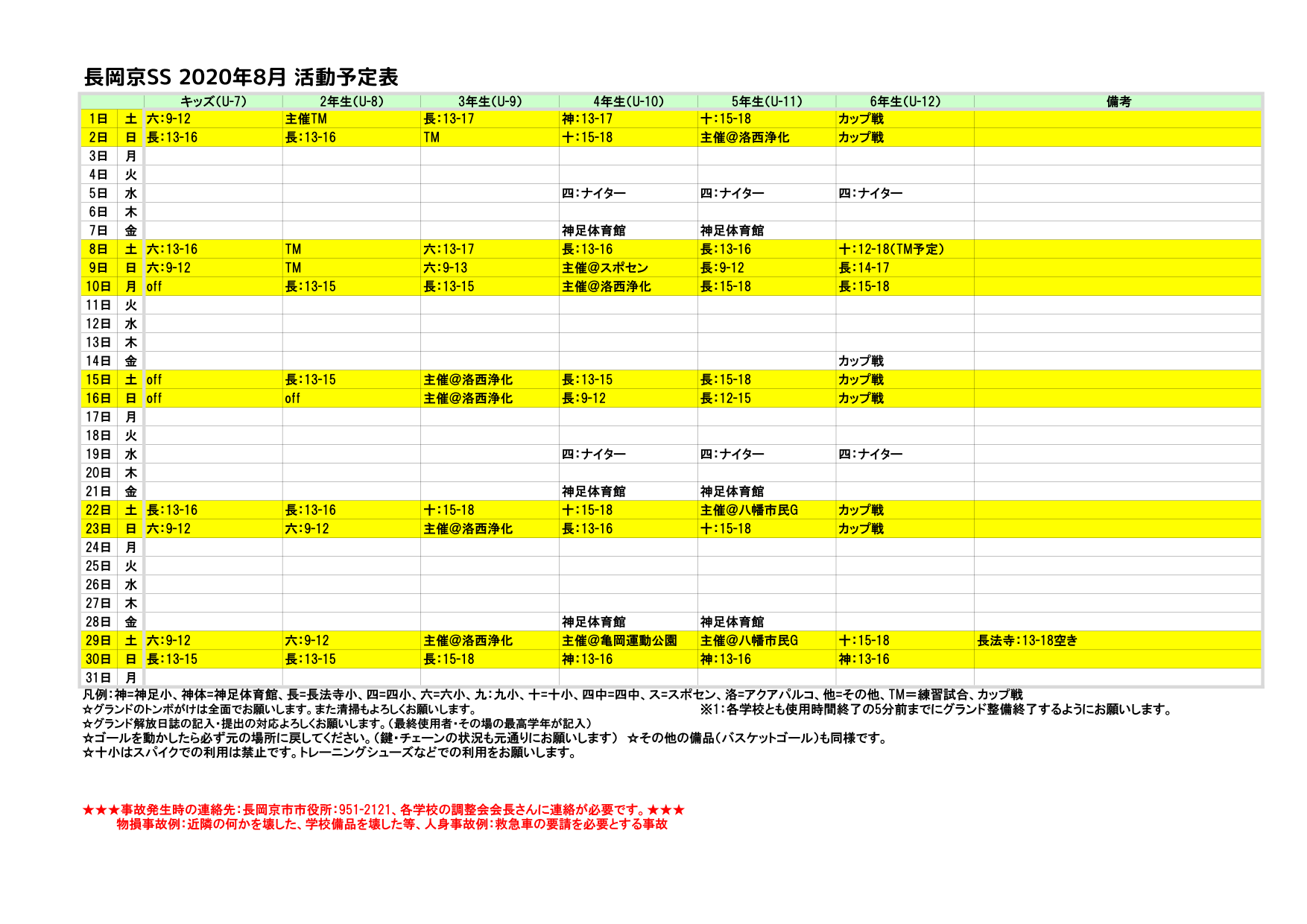 8月の活動予定をアップします。 随時体験絶賛受付中です!こちらよりお申込みください。